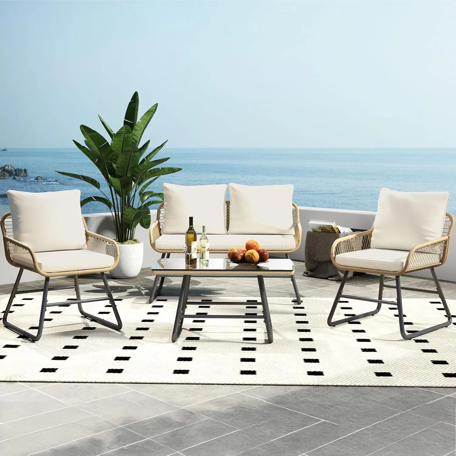 Boho Outdoor Wicker Patio Furniture Conversation Set