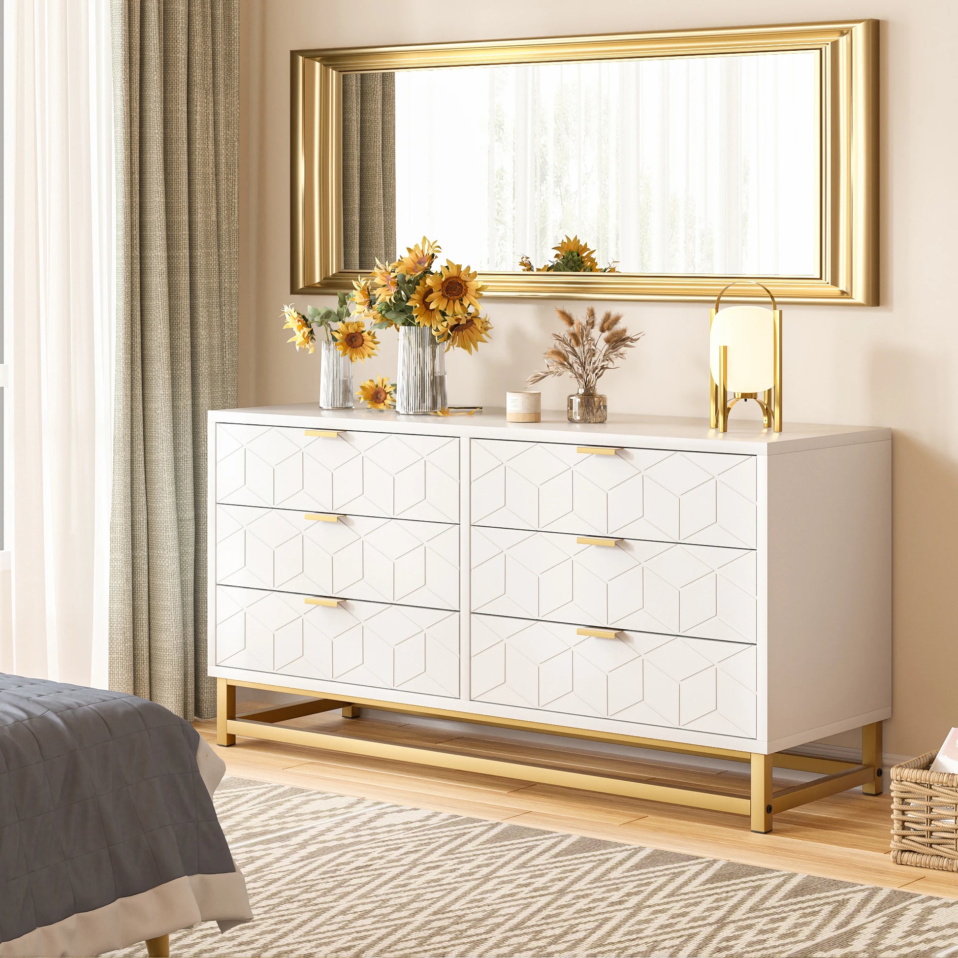 Luxury 6-Drawer Diamond Dresser with Golden Accents